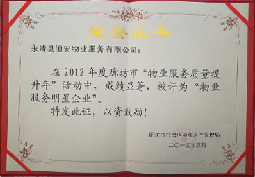 永清縣恒安物業(yè)服務(wù)有限公司成立于2003年11月,是以為業(yè)主提供安全保衛(wèi)、綠化、保潔衛(wèi)生、維修服務(wù)等多項(xiàng)服務(wù)的民營(yíng)企業(yè)。管理體制完善,技術(shù)力量雄厚。